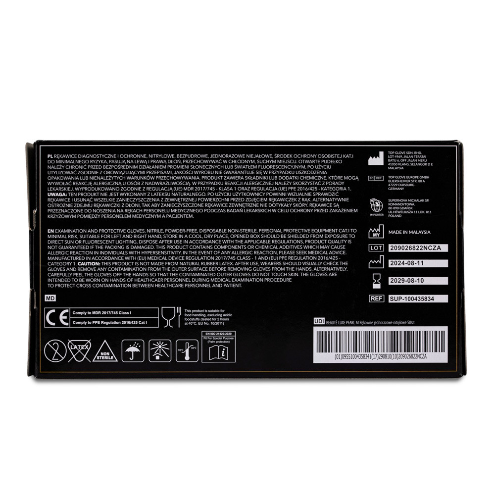 Beaute Luxe diagnostic and protective gloves are high-quality, powder-free, disposable nitrile gloves designed for professional use in the beauty industry. Classified as Personal Protective Equipment Category I (for minimal risk), they provide effective protection while ensuring comfort and elegance during treatments.