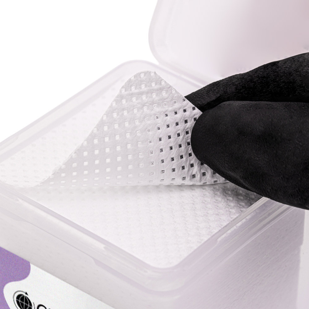 High-quality white lint-free wipes with perforation (micro holes) designed to ensure cleanliness and precision during nail treatments. Their smooth and soft structure effectively absorbs liquids used in nail services. The wipes are durable, do not fray or split, and leave no lint, fibers, or dust on the wiped surface.